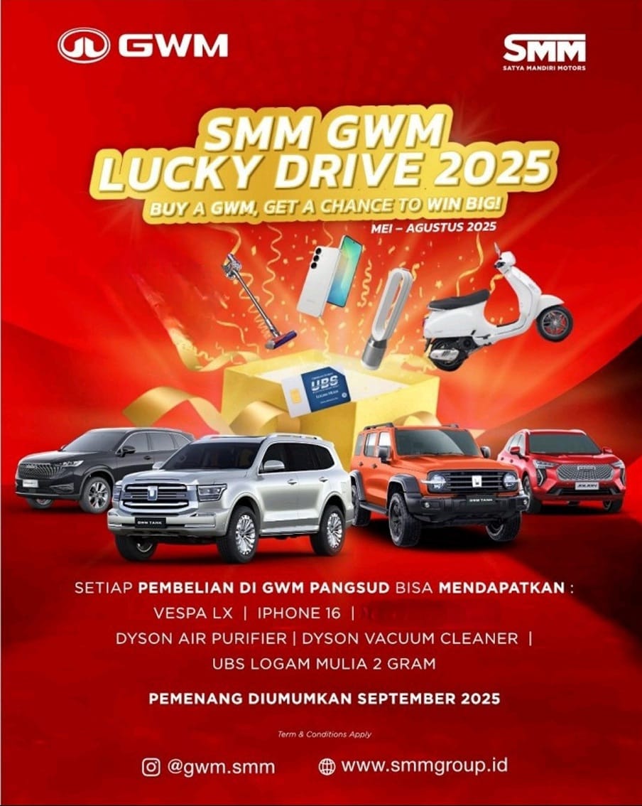 Setiap Pembelian Mobil GWM di Bulan Mei sanpal dengan Agustus 2025